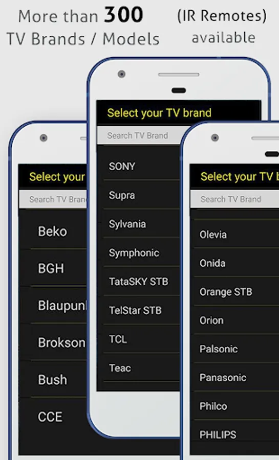 • This app is compatible with the TV brands / models currently available in the app. This is an unofficial TV remote app for these Television brands, remote control for tv
