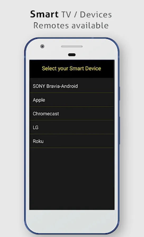 Smart Universal Remote Control TV functionalities are currently available tv control for ir remote control SONY Bravia Android TV's, LG Smart TV, Roku, Google Chromecast, Android TV and apple tv remote