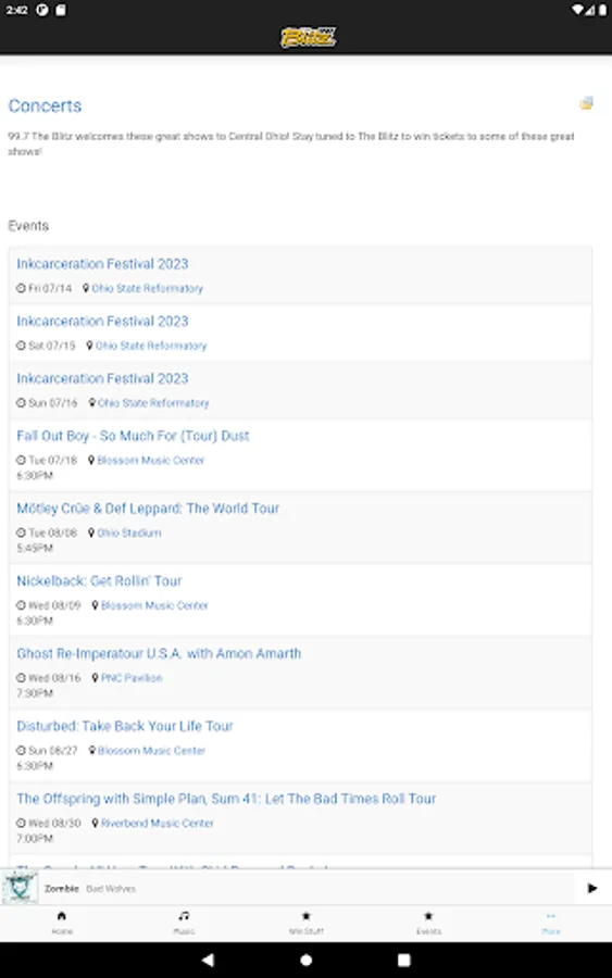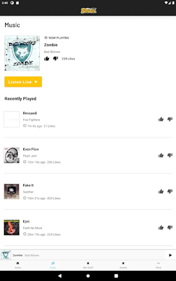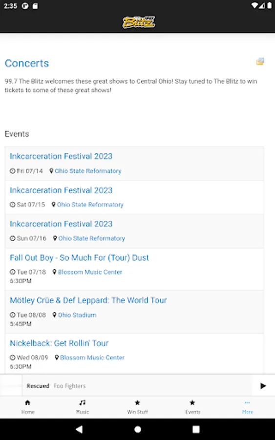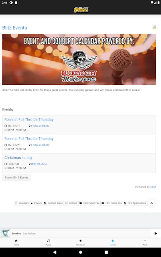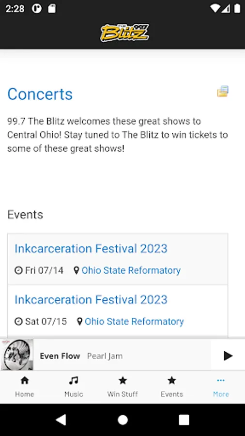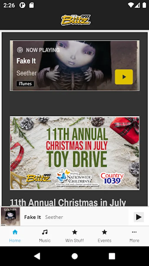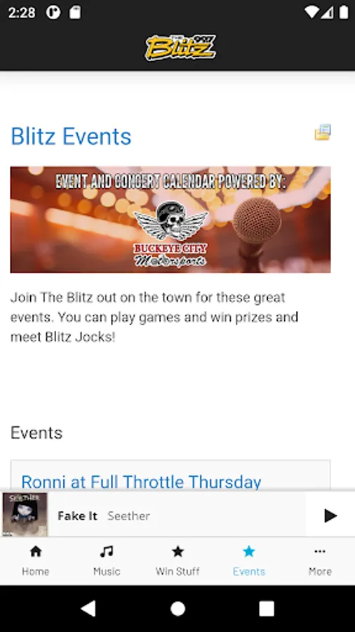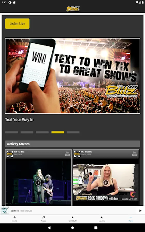 Never be without your favorite radio station. 99.7 The Blitz is proud to present our OFFICIAL radio app. Listen to us at work, home or on the road. Install our app and get instant access to our unique content, features and more! The Blitz Mobile App will let you take “Your Rock Station” with you wherever you go… to work, to school, on a date, in your bedroom, in the bathroom(weird), on the front lawn(why?), in the kitchen, or even in your creepy man-sized treehouse(really weird)! Wherever you go The Blitz is there! - See current and recently played songs, up to date station and local news on a single screen - Get notifications and single click access to station events, promotions and contests - View station’s YouTube channel without searching or leaving the app (when available) - Wake up to your favorite station with our alarm clock. Record a personal reminder to play before waking to the station. - Fall asleep while listening to your favorite station - Access station's weekly show schedule so you don’t miss a thing - Follow us with access to our social media sites - Share our app via Facebook, Twitter, and e-mail