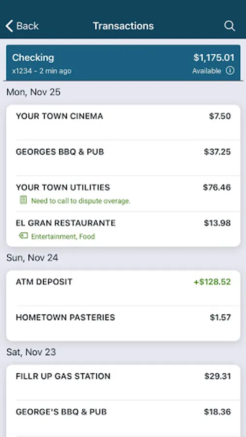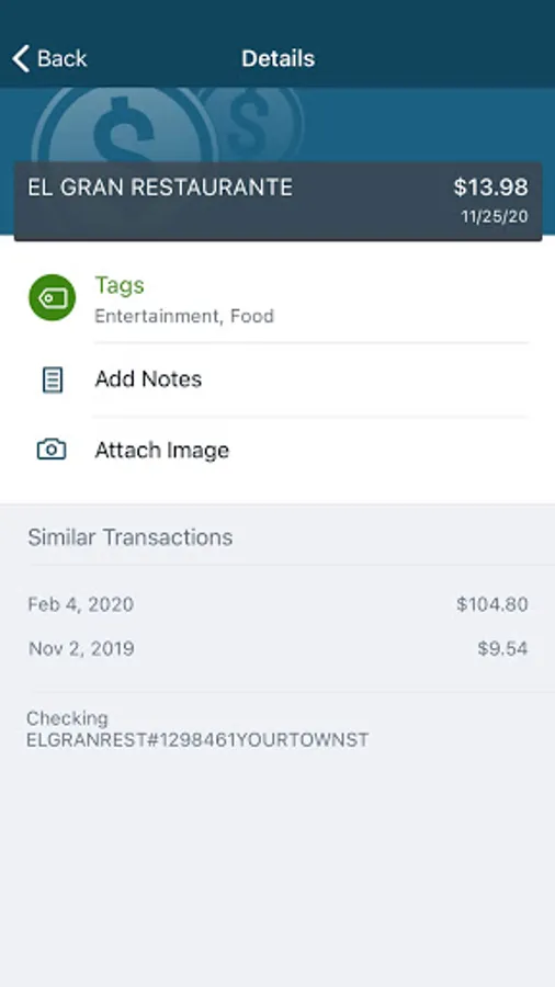 • Keep your transactions organized by adding tags, notes and photos of receipts and checks.