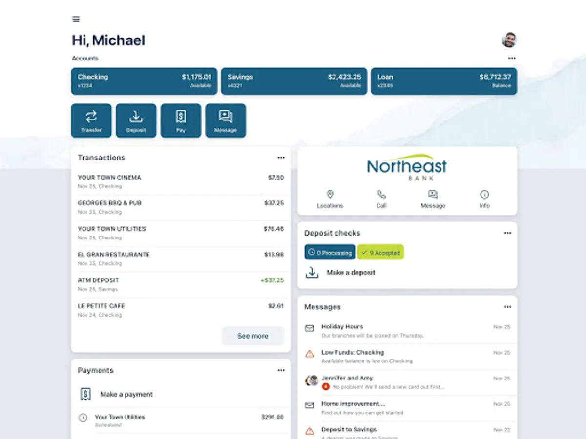 Northeast Bank’s mobile banking app is fast, secure, and makes life easier by giving you the tools you need to manage your accounts from any location at any time.
