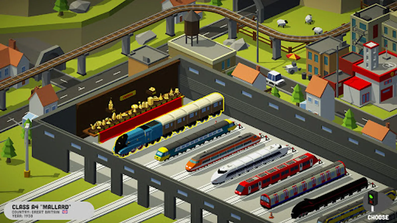 - Conduct trains in beautiful low-poly 3D worlds