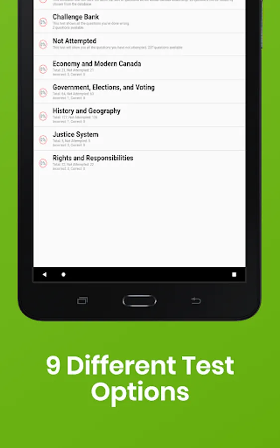 • Option to review all the Canadian Citizenship test questions if you don't want to take the quiz