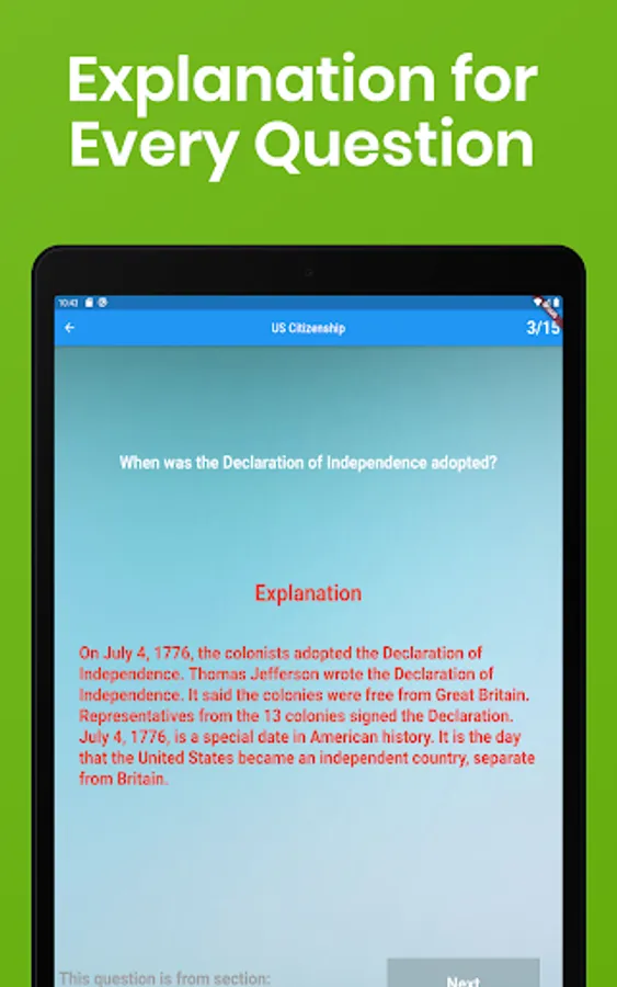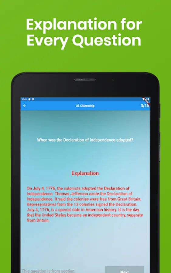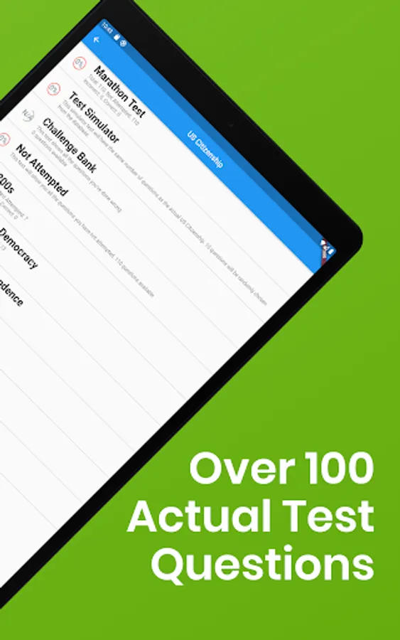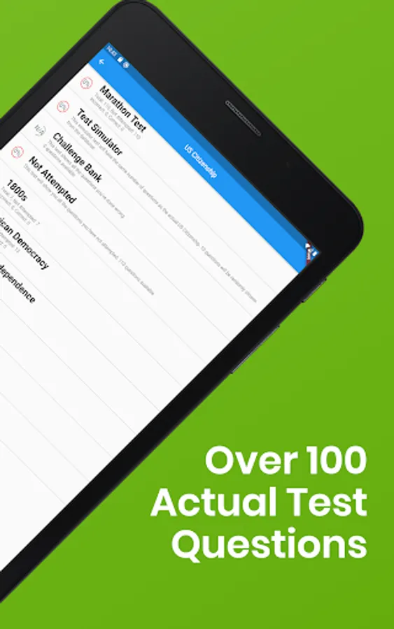 Do you want to become a U.S. citizen? If so, you must pass the mandatory US Citizenship Naturalization Test. Based on statistics, up to 30% of applicants fail this challenging test each year. This app is professionally designed to help you effectively study and pass the US Citizenship Naturalization Test. With more than 100 actual questions based on the official study guide from the U.S. Citizenship and Immigration Services (USCIS), you will learn about America’s history and geography, symbols, governing system, and the rights and responsibilities of being a U.S. citizen right here on your Android Phone and Tablet. This app even comes with questions unique to your state to meet your individual needs!