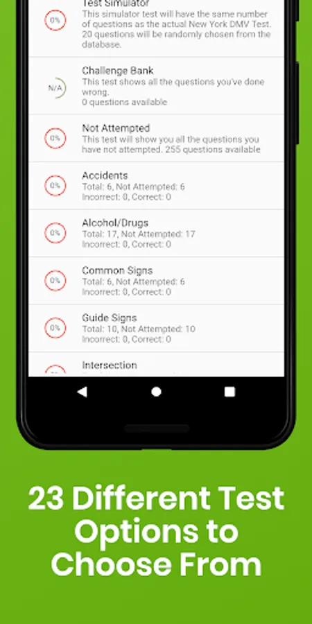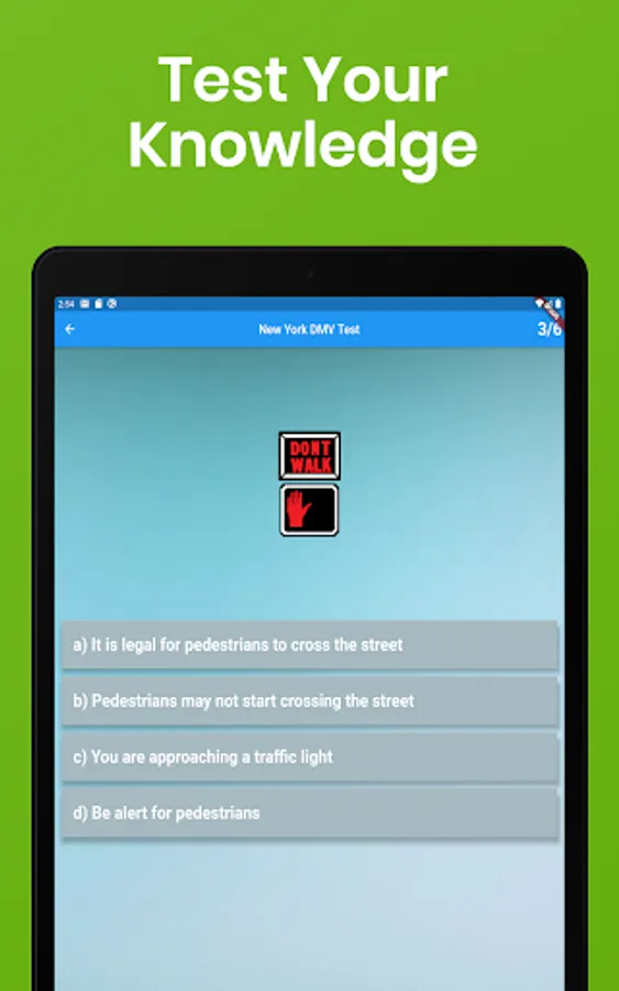 Do you want to spend only a few hours studying and still pass your New York DMV Test on the first try? This app is professionally designed specifically for the State of New York. All the practice questions are based on the latest New York DMV Driver's Manual. 3 test modes are available to suit your individual learning style. Don't waste time and money writing the New York Class D, DJ Test again and again. Study for your New York DMV Test right now on Android Phones and Tablets!