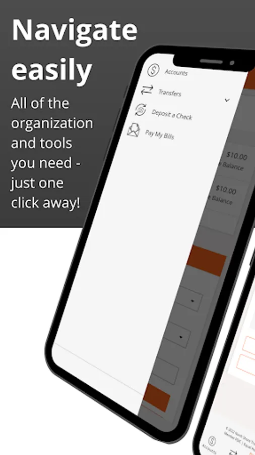 Easily access all of your accounts and features right at your fingertips with our mobile app. Manage your accounts, deposit checks, make transfers, pay bills and more!