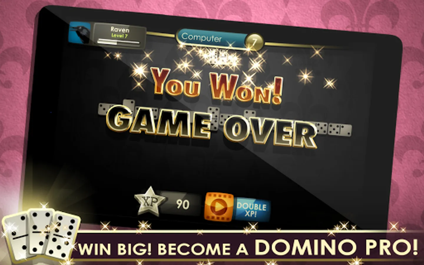 Domino Royale offers 5 unique game modes as well as 4 difficulty levels. Earn Poker chips with every win and build up your stash. Unlock and play the higher difficulty levels for even better payouts. It is an unparalleled game play experience! Also connect to Facebook to store your statistics and progress in the cloud. Personalize your game, earn experience with every game, and share your progress between all your devices.