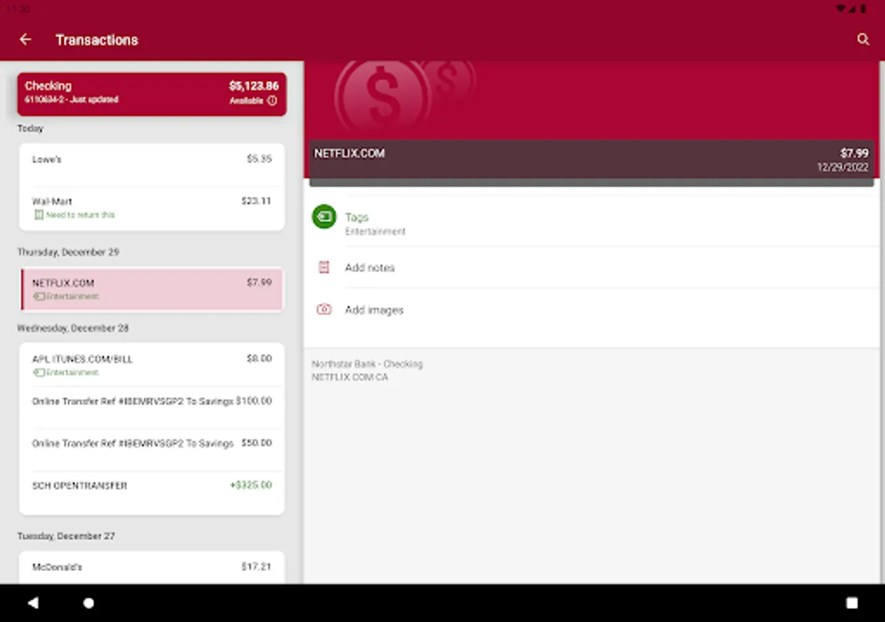 -Keep your transactions organized by allowing you to add tags, notes and photos of receipts and checks.