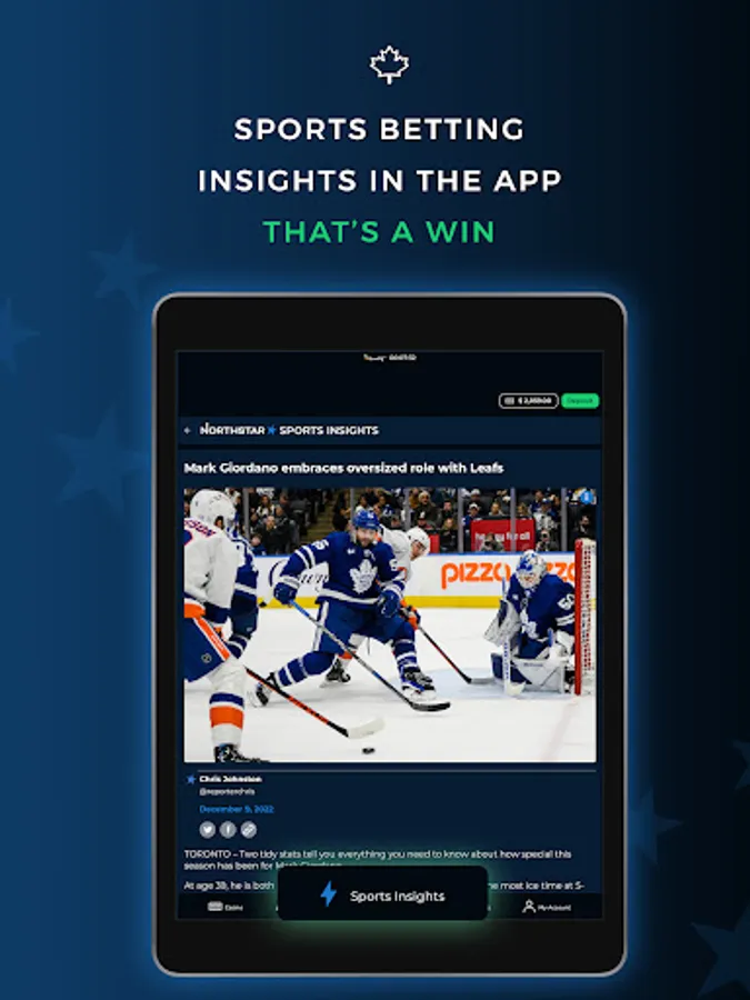 Our Sports Insights content is integrated right into the app to help make you a more informed bettor. You’ll find expert betting advice, engaging analysis from NHL Insider Chris Johnston and others, as well as live scores, stats and news. You can even add wagers in our articles directly to your betslip.