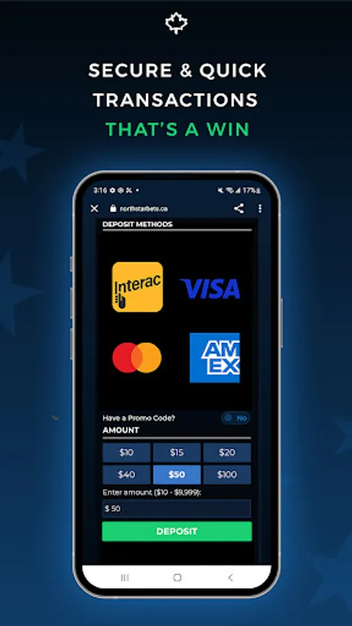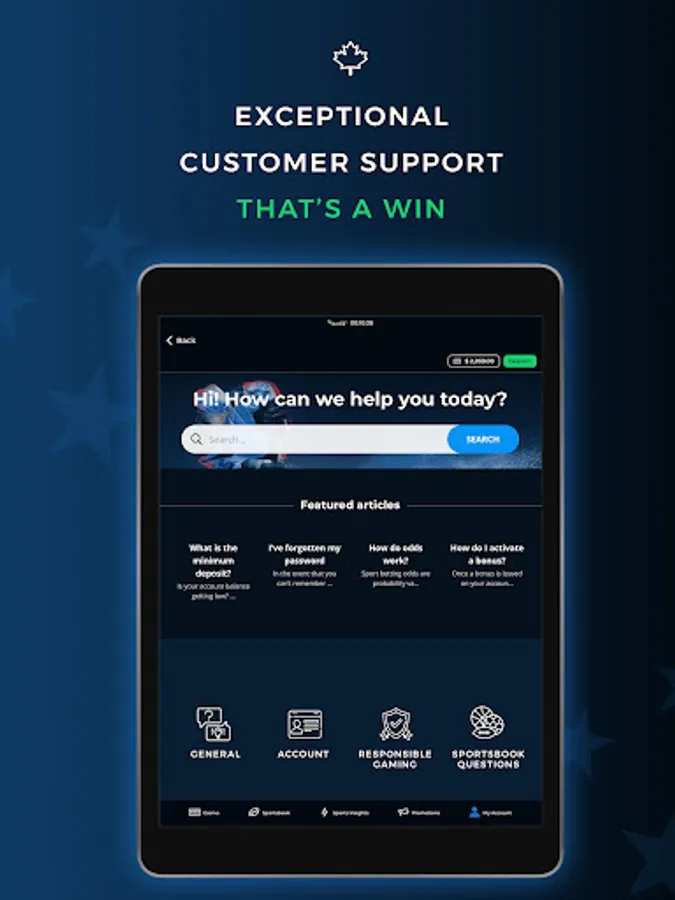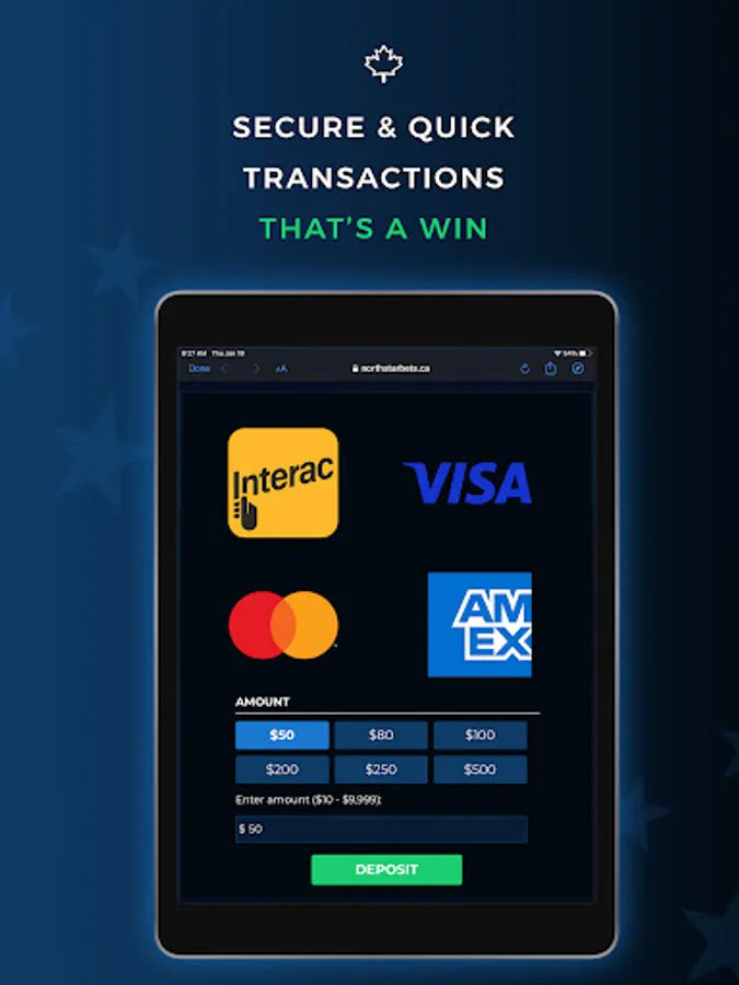 Registration is simple. Just download the app, create an account, and start enjoying Ontario’s premium gaming experience. Once signed in, you can make convenient deposits with multiple options including Canadian credit cards and Interac. Withdrawals are quick and worry-free.