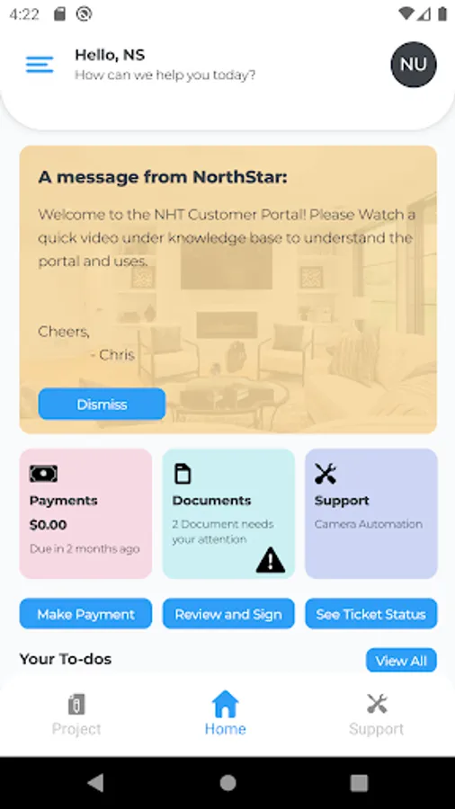The NorthStar Home Technologies Customer Portal is a comprehensive tool that allows customers to easily manage their home automation projects, service plans, and account information all in one place.
