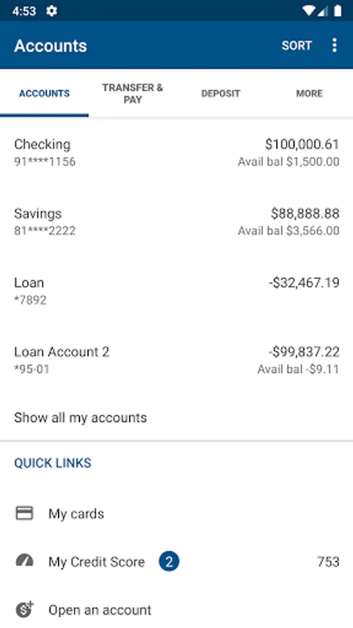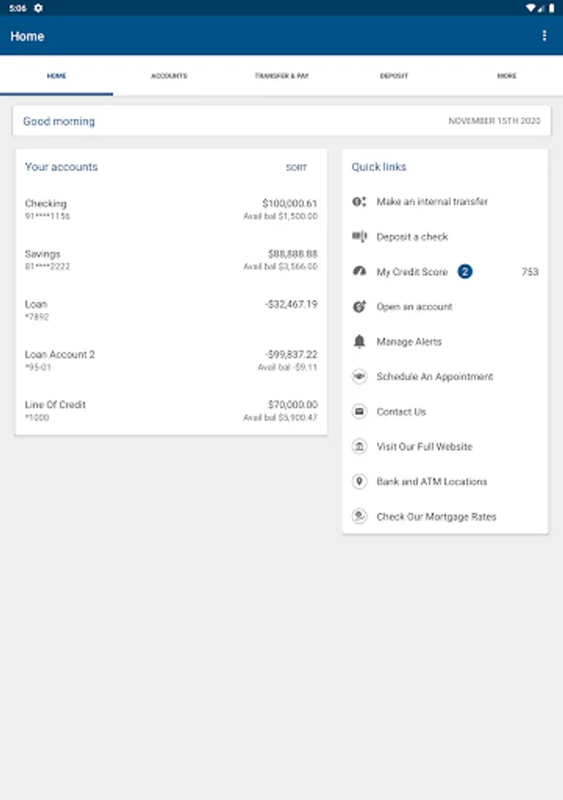 - Pay bills** and transfer funds
