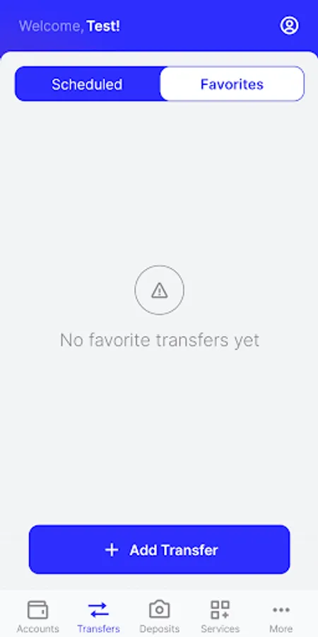 · Transfers: account to account, scheduled, pending ACH and check withdrawal transfers are available.