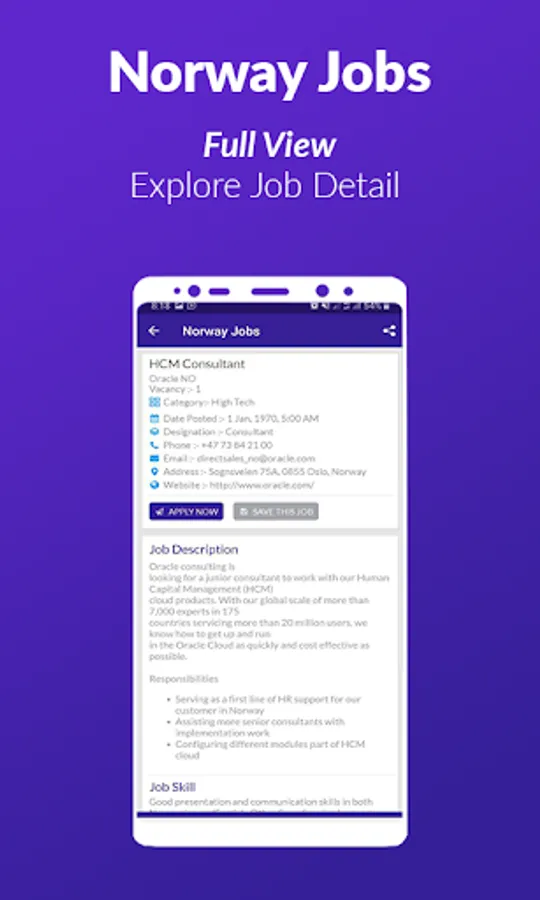 Looking for Jobs in the Norway? Apply to the latest Jobs anytime, anywhere with the Norway Jobs app. Whether you are a fresh graduate or an experienced professional, looking for full time jobs or part time jobs in Norway, this app will help you stay updated with the latest job opportunities in Norway market.