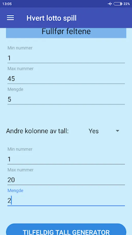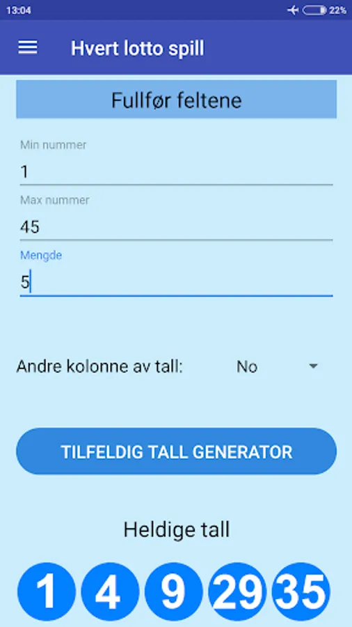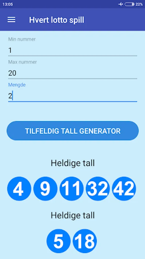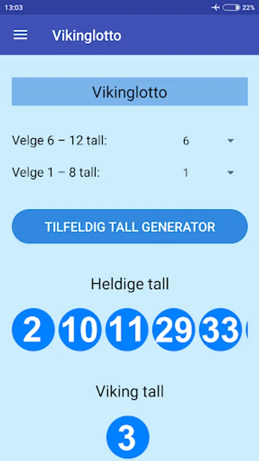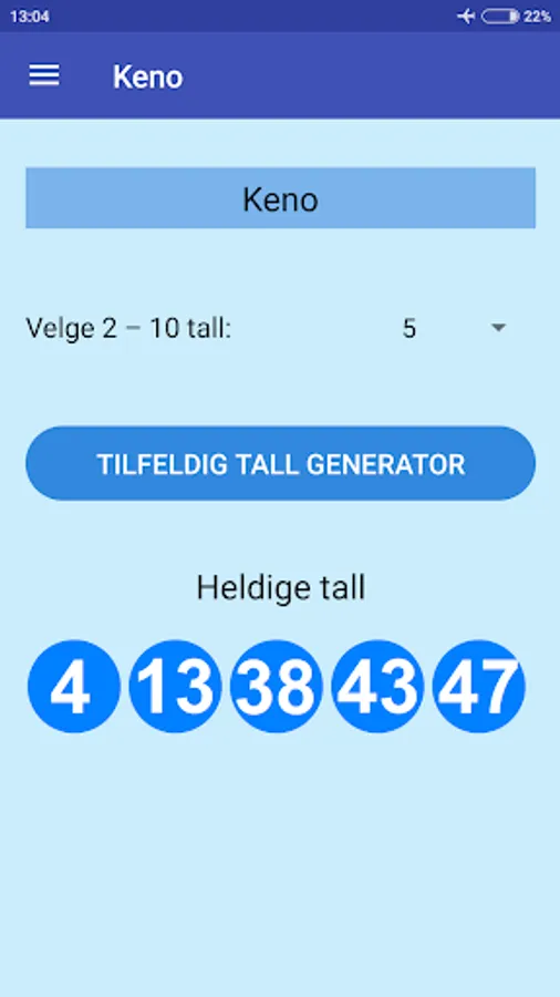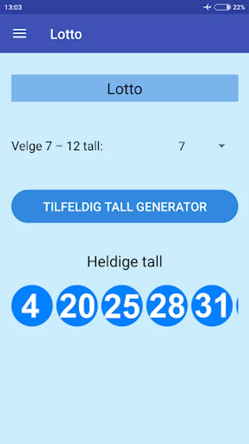 With this free application you can pick random numbers for the games Norwegian Lotto, Vikinglotto, Eurojackpot, Keno and each other lotto game.