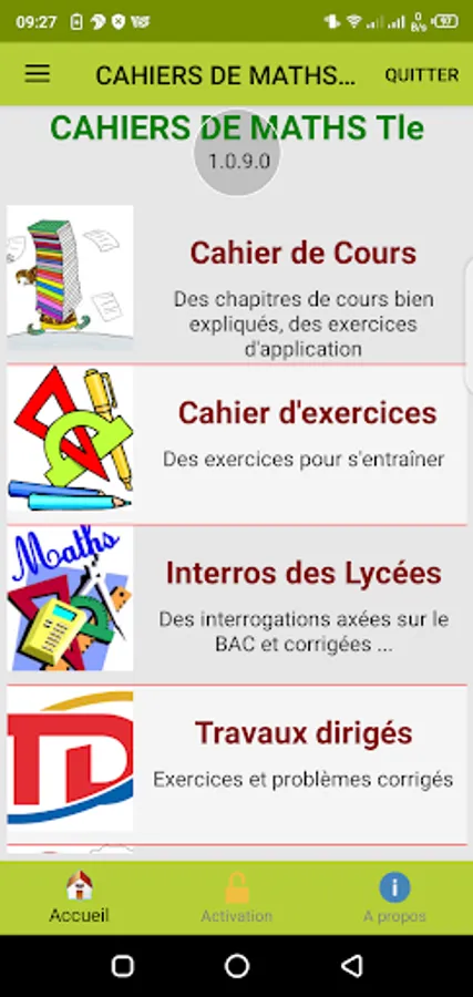 Cahiers de Maths is an "all-in-one" Mathematics book, which aims to better equip students to effectively prepare the Mathematics test for the Baccalaureate series D exam as well as for the various competitions.