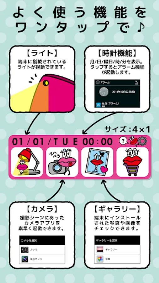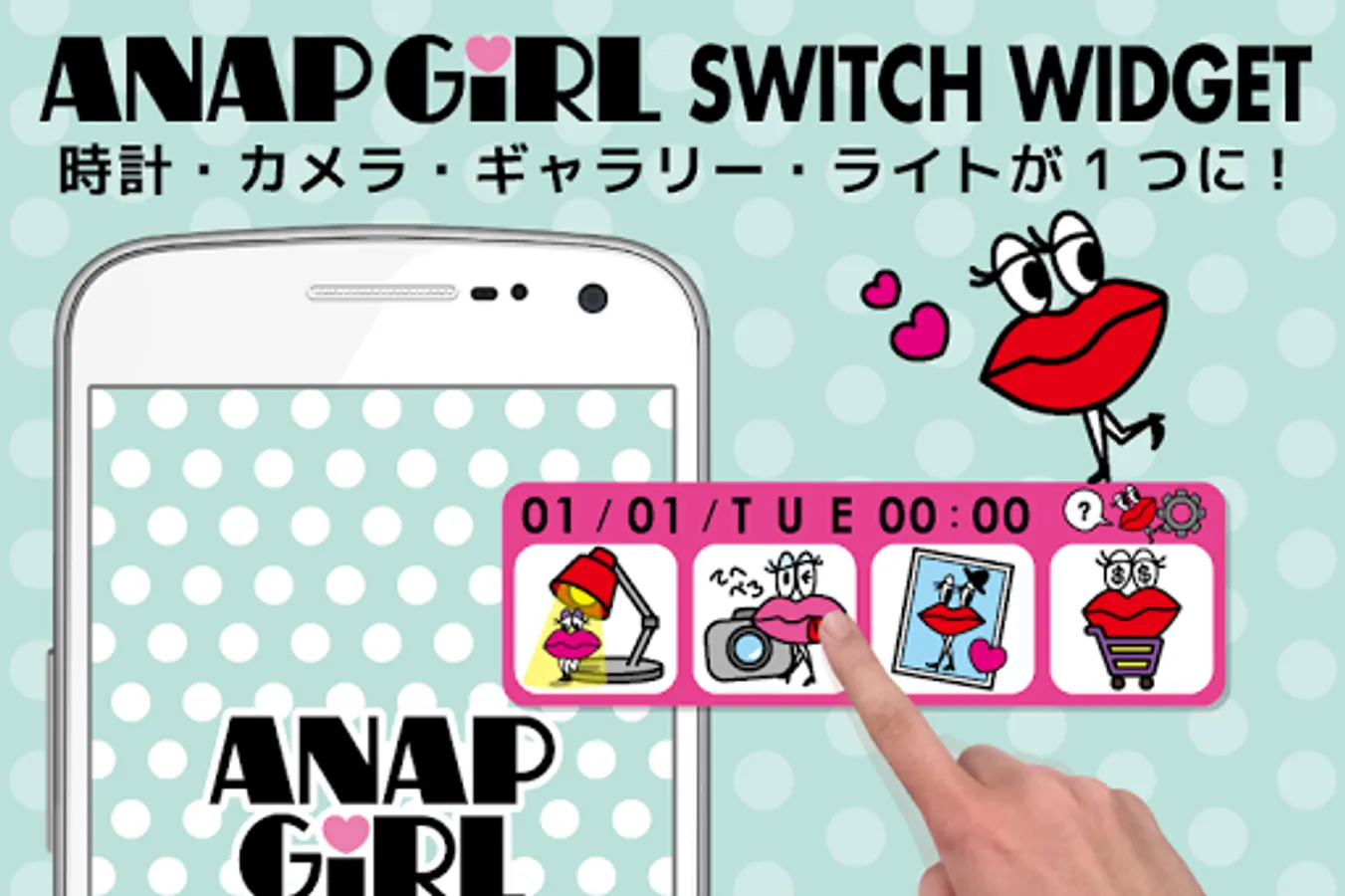 The "Anappu Girl (ANAP GiRL)" lip pattern clock (clock) widget, are attached switch (button) is frequently used apps easily launch can be!