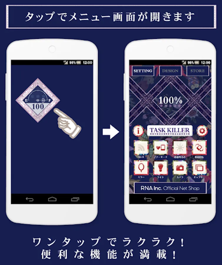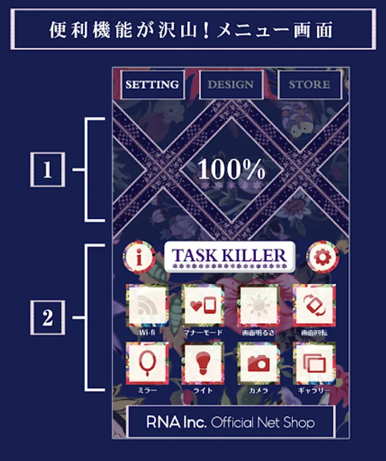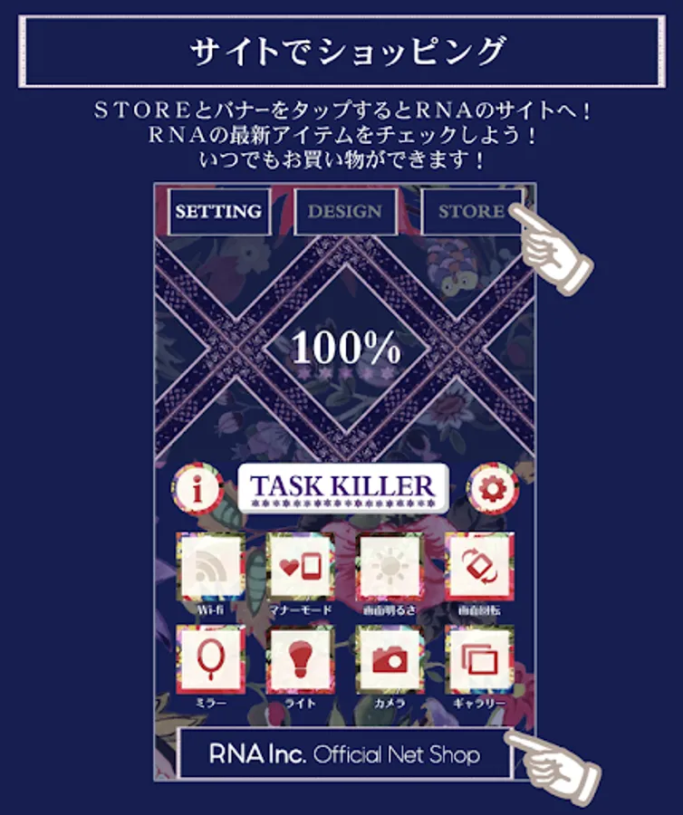 Fashion brand "RNA" appeared stylish battery widget app bandana pattern from ★