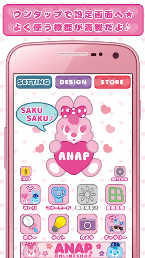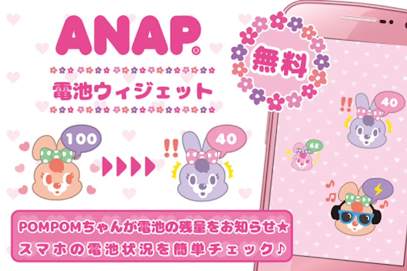 Popular ladies fashion brand "ANAP (Anappu)" character "pom-chan (POMPOM chan)" This is a cute battery widget of ♪