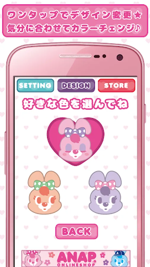 . Help choose pom-chan the color of (POMPOM chan) from three types from setting screen!
