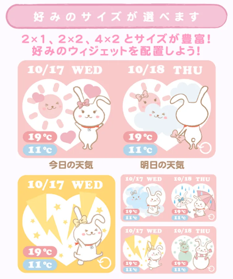 If the home screen has set up a lot such as icons, 1 × 1 size, such as 2 × 1 If you want to use the widely weather widgets, applications let you customize the infinity ★ cute home screen!