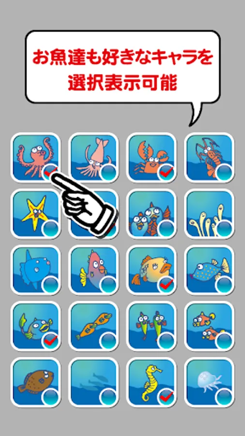 ◆ hide display setting of fish character! Type of fish is 20 kinds in total