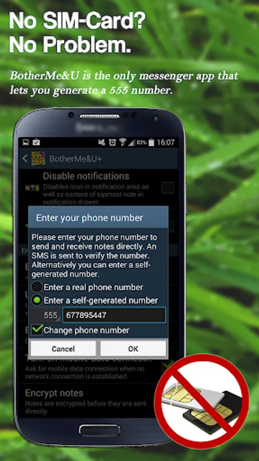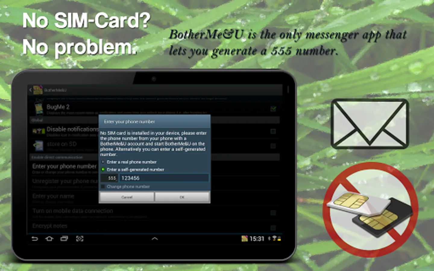 ★You can use the app without your private number and send messages without a SIM card simply by registering a personal 555 number of your choice.