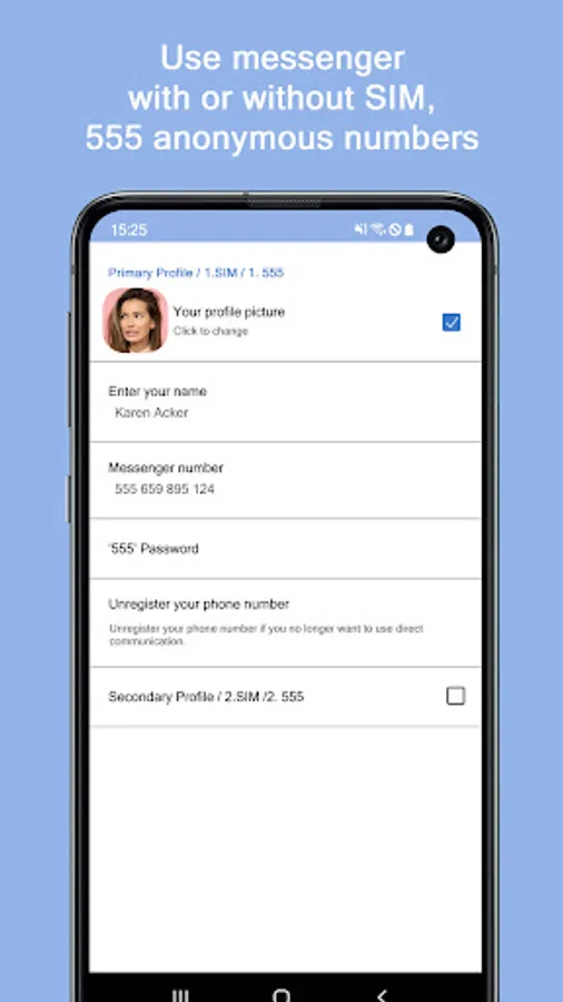 • Anonymous 555 Hollywood number: Create your own ´555´number. It makes you reachable just by those you choose. Alternately you can also register your SIM number.