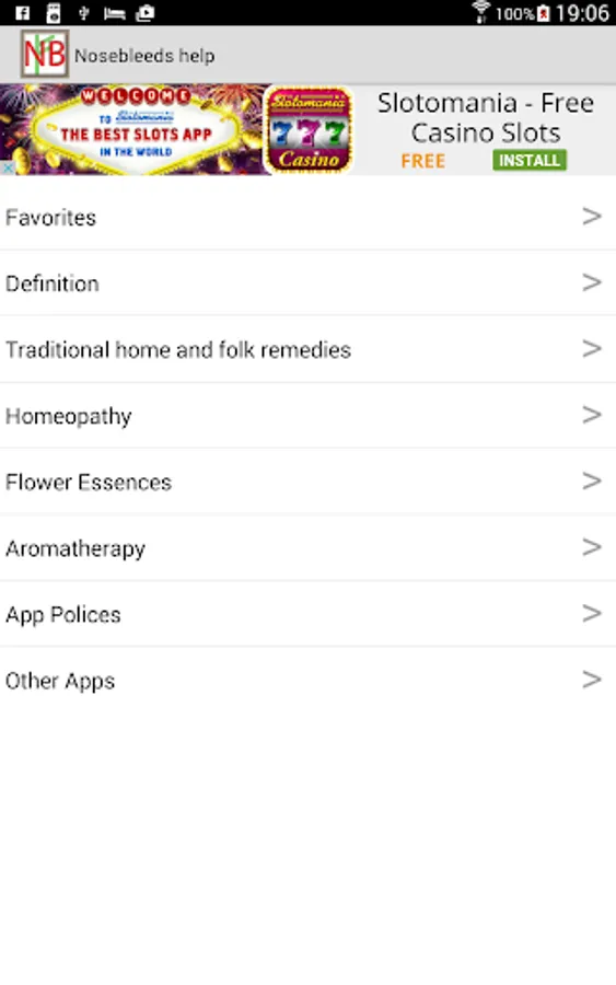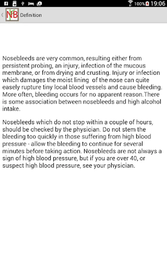 With this app, we have compiled ancient remedies for nosebleeds. We give you only the successful ones. Here is the table of contents: