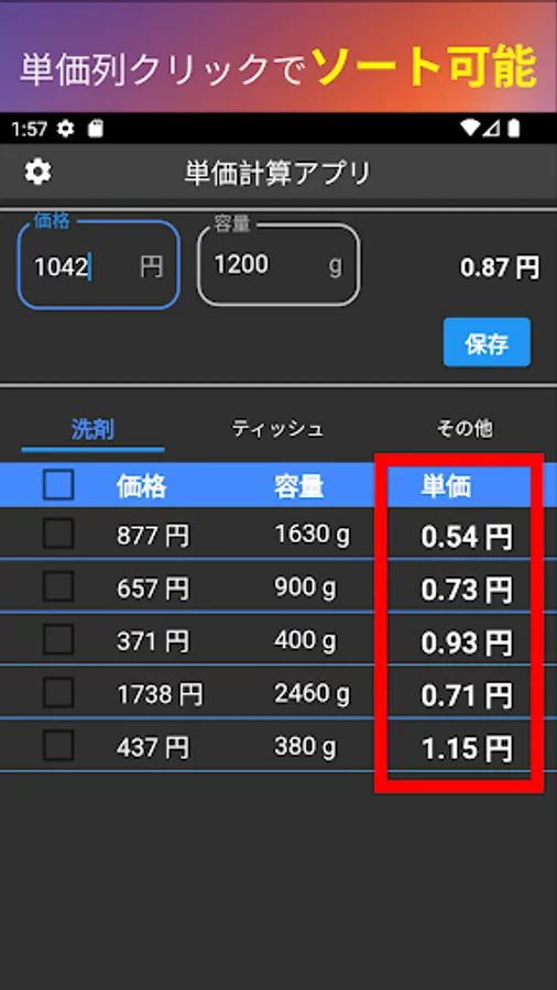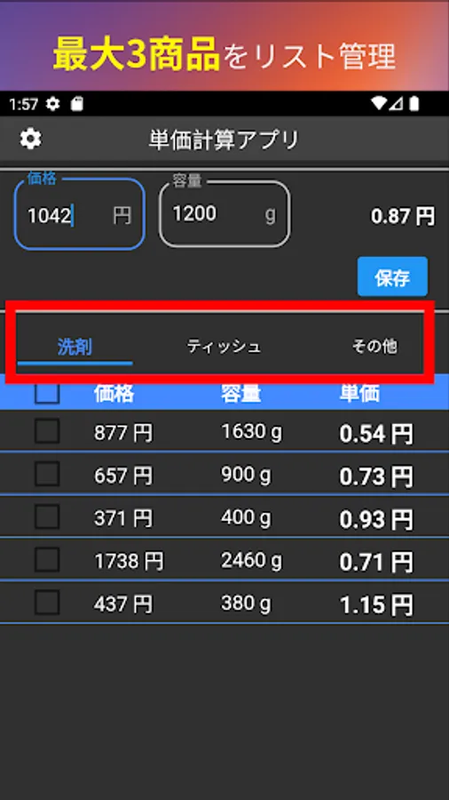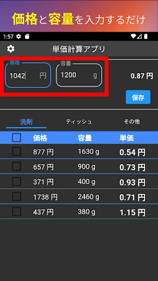 ・Other apps can only compare the unit price of one type of product, so it is troublesome to delete all of them and enter them one by one.