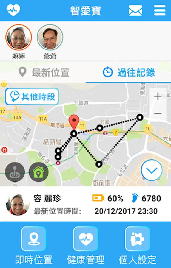 2)配合「智愛寶」手機應用程式:(iOS和Android平台)掌握實時或過往行踪,協助家人了解長者行蹤