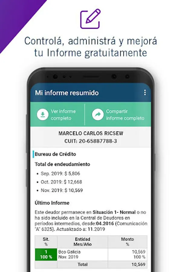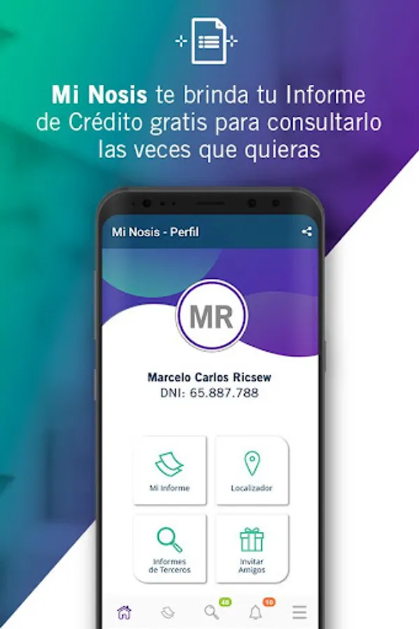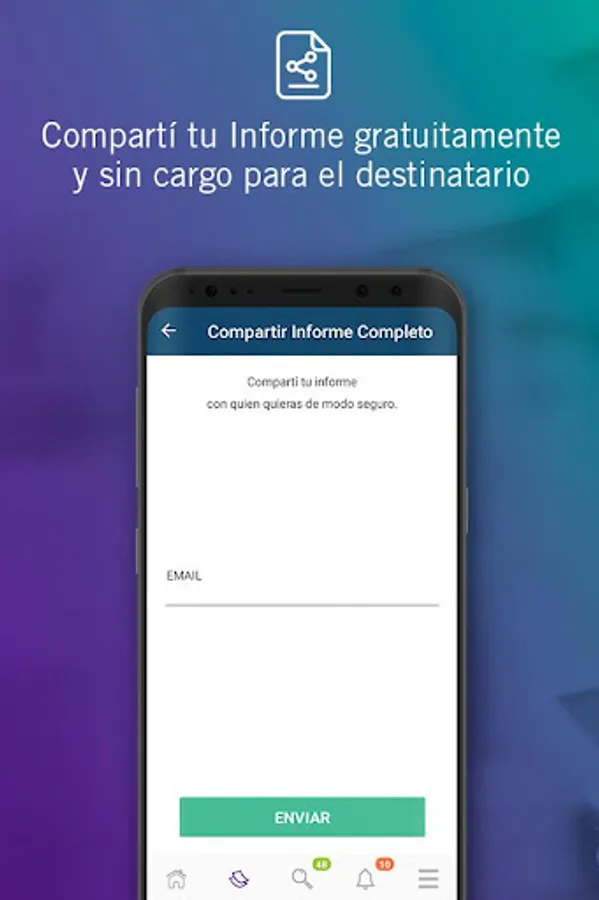 Take your updated Credit Report on your cell phone and check it for free as many times as you want. Control and correct your information to have greater access to credit and protect against phishing fraud.