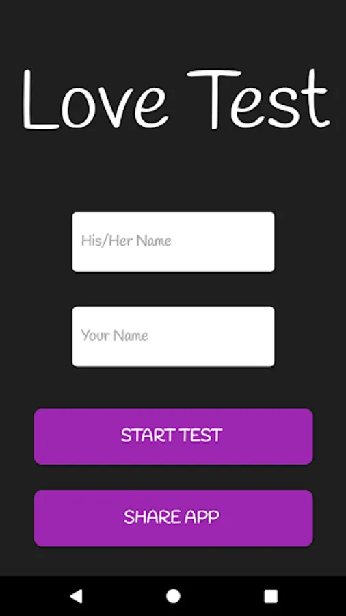 Please note: This app is for novelty purpose's only and no data is retained or stored. Love Test uses a numerical algorithm and should only be used for fun.