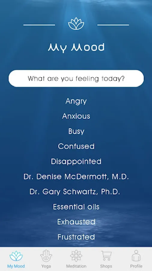 MIND DIVE has a powerful search feature called “My Mood.” You can use this to find resources in the app to help you based on how you are feeling, how you want to feel, what you are interested in right now.