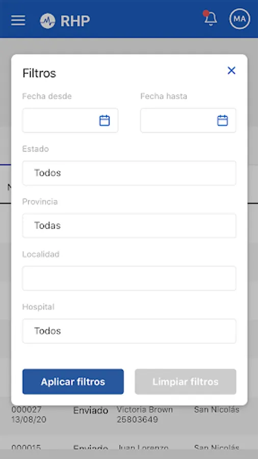 RHPApp is the platform that facilitates the administrative procedure for the collection of the Autonomous Legal Obligation (OLA) by Argentine public hospitals. It collects, orders and archives data from patients involved in traffic accidents with insured vehicles. It also creates statistics based on the data obtained and can be used from tablets or cell phones.
