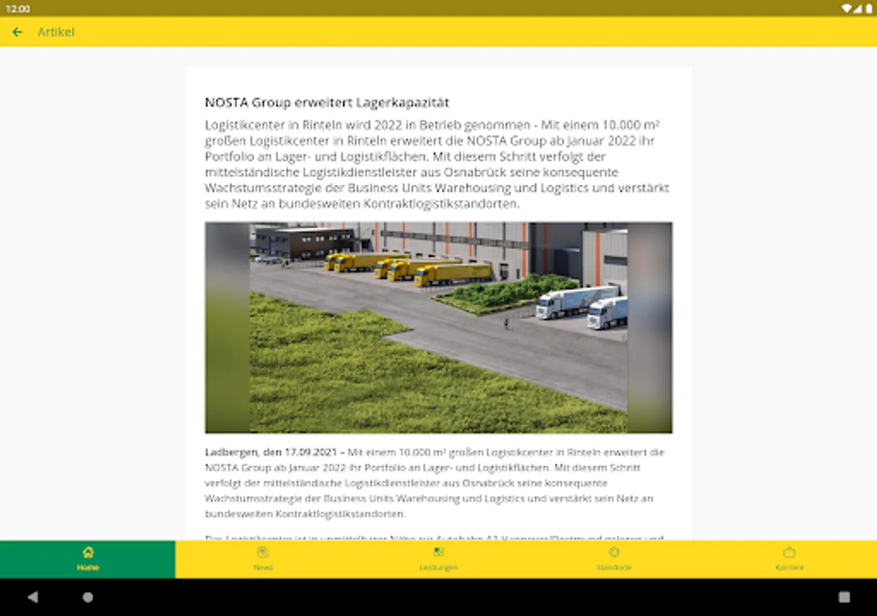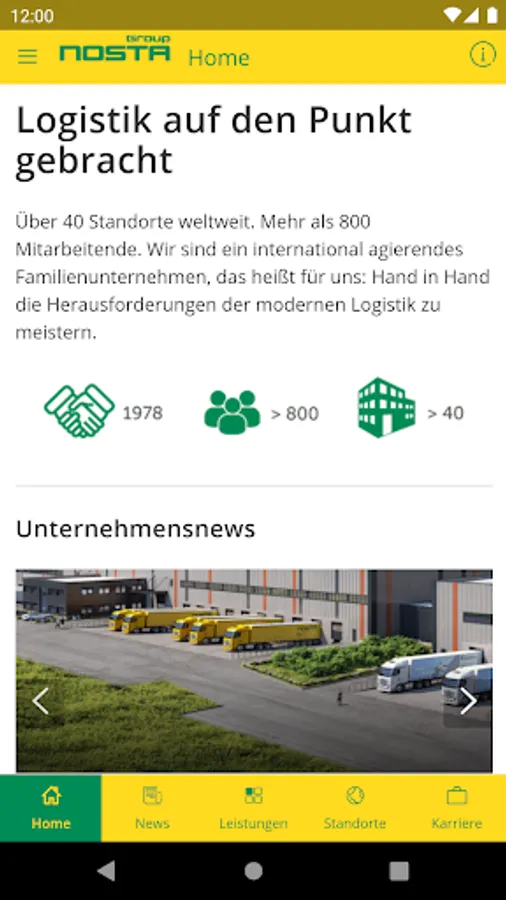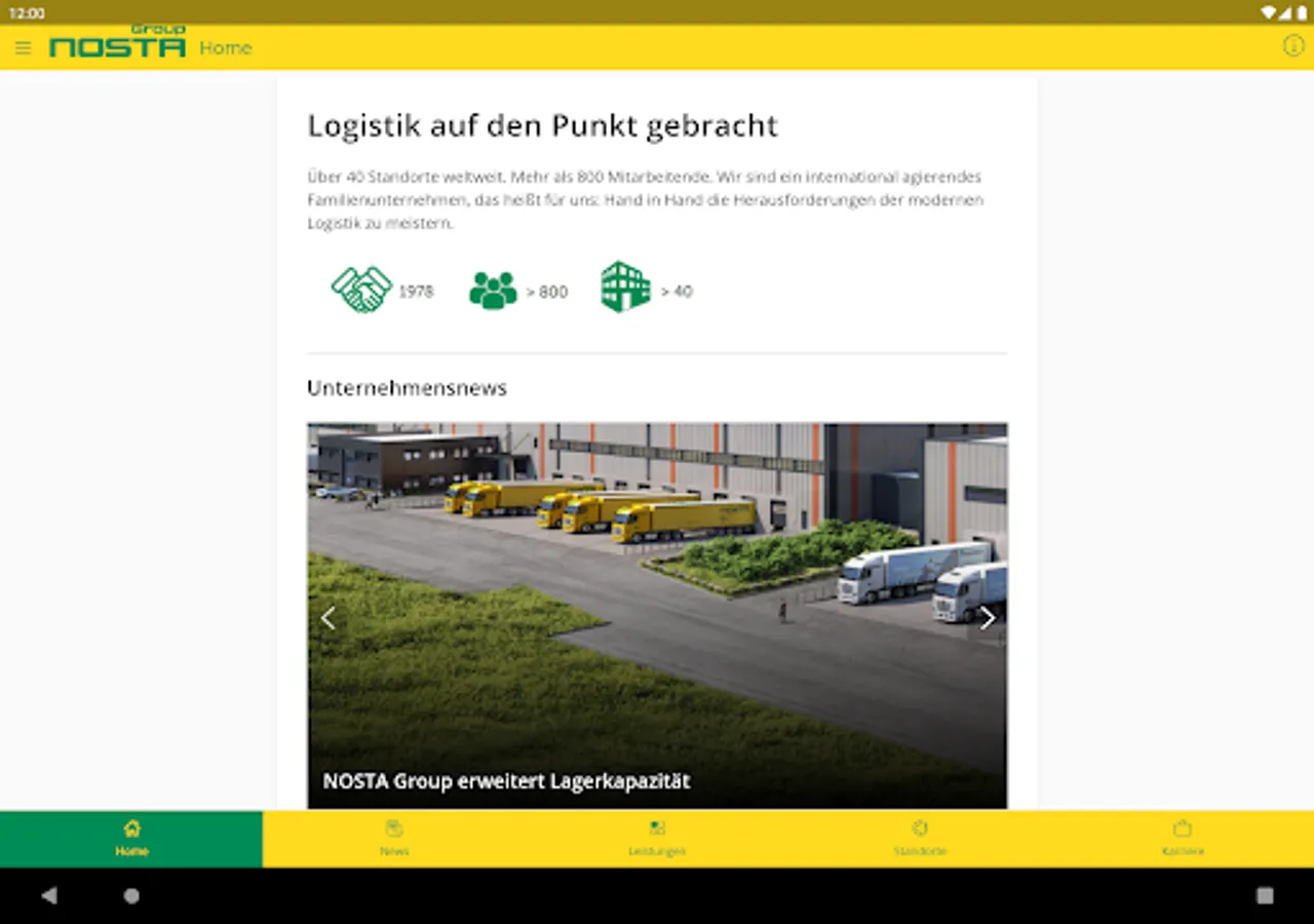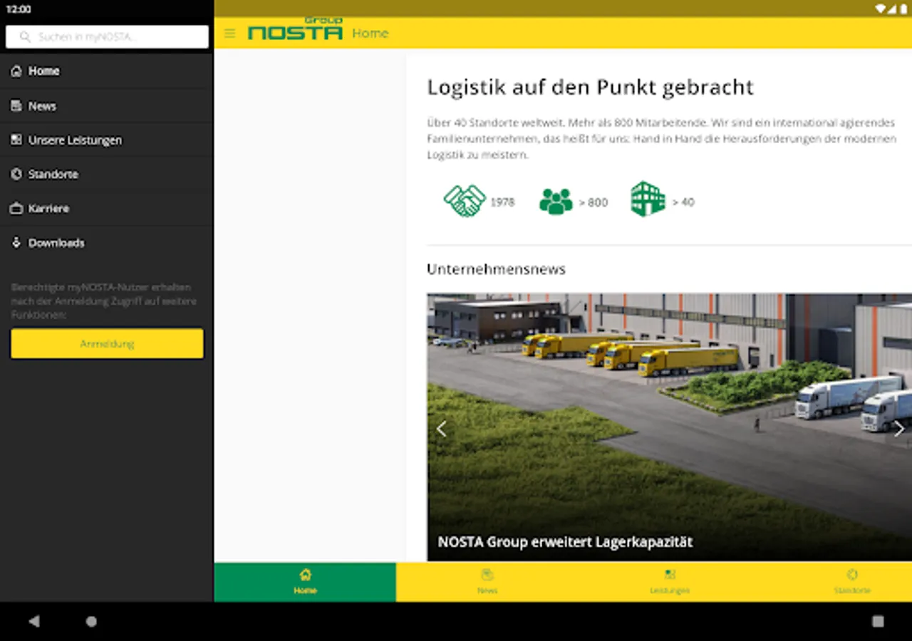 Always up to date with myNOSTA: In the app you will not only find the latest news from the NOSTA world, but also information about the company with its services and worldwide locations, company vision and values as well as useful downloads and interesting facts about sustainability. Access to the career portal gives you an insight into the NOSTA world of work and keeps you up to date on vacancies and job and career events.