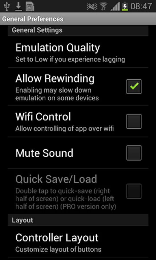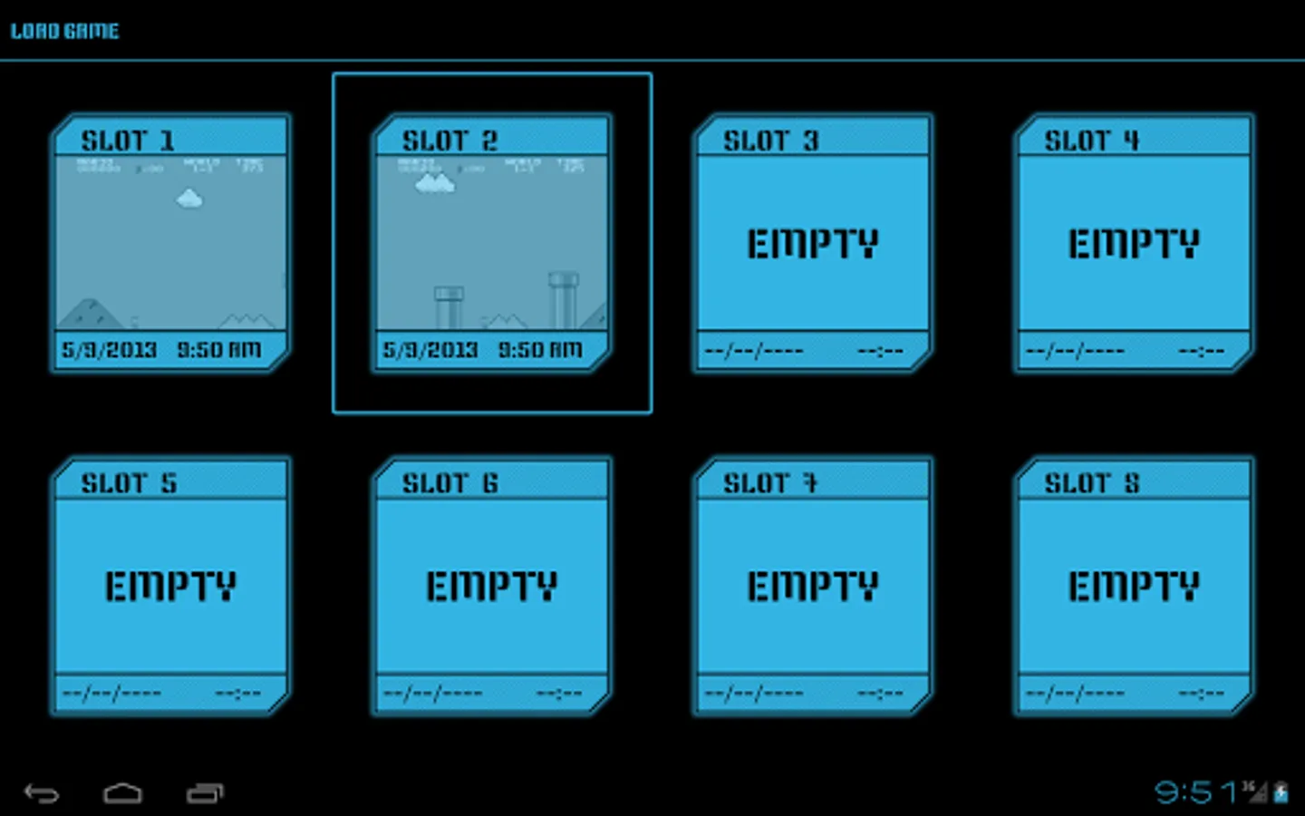 - Game progress saving and loading - 8 manual slots with screenshots & an autosave slot. Share save states among your devices via BT, mail, skype etc. directly from the app.