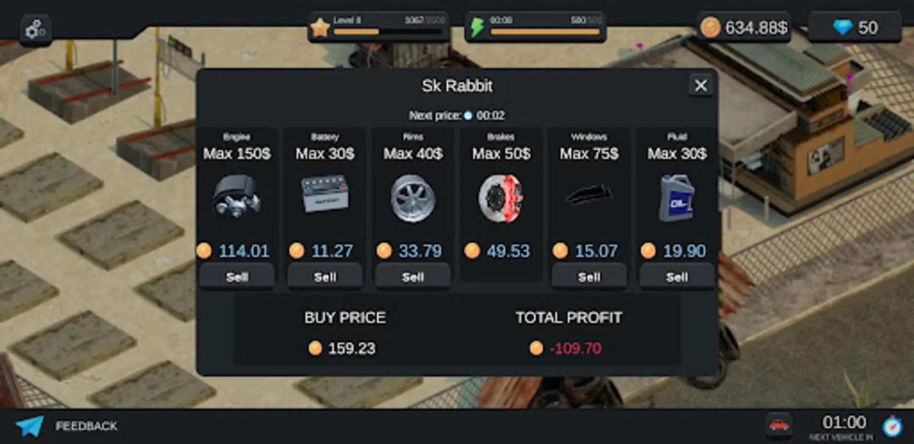 Buy damaged vehicles that you get to detach or repair cars. Sell vehicle parts to make profit and climb on the ladder.