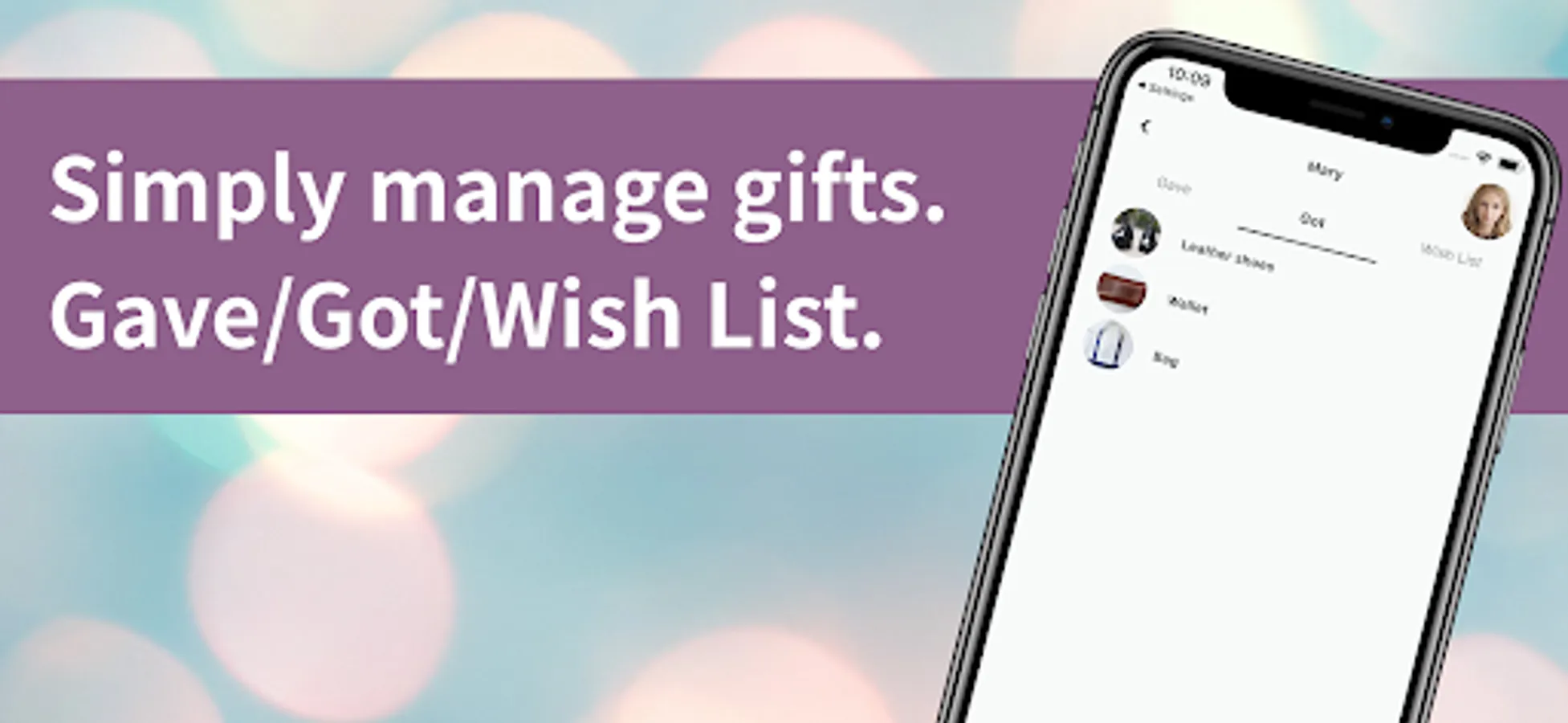 You can simply manage gifts in three categories: "Gave", "Got", and "Wish List".