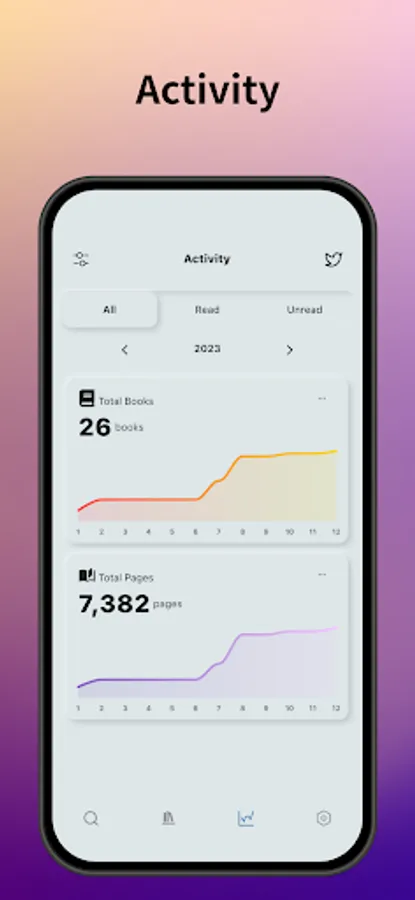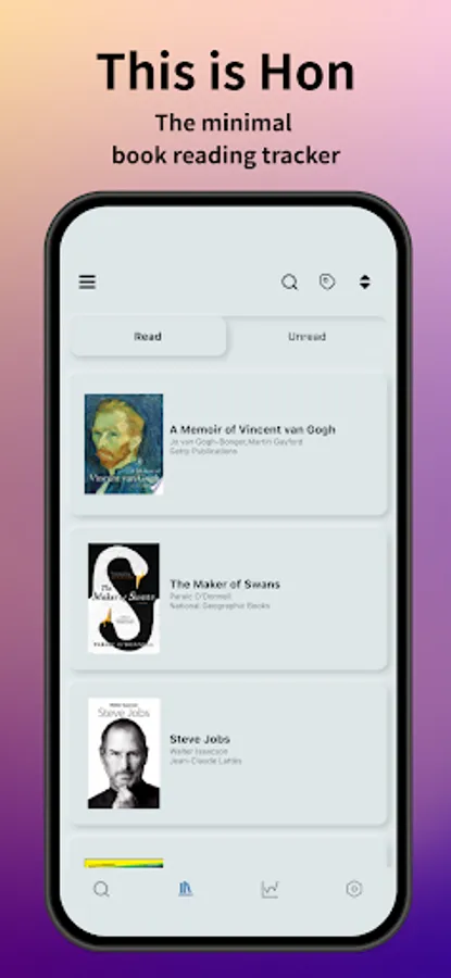 - Bookshelf for easy organization with two types of "Read" and "Unread".