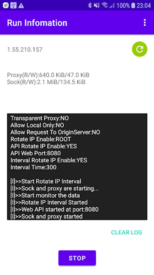 Mobile proxy application support sock and http/s proxy server. Support change mobile data ip via web api support and interval time