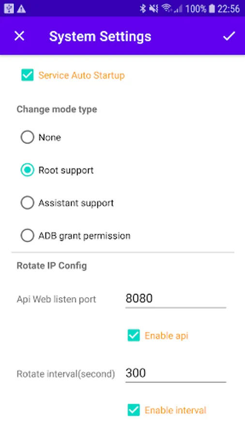 This is Android mobile application app, which can help to build a proxy/sock server from your phone. If you not need proxy/sock, you can use rotate api or interval time to change Android Airplane mode