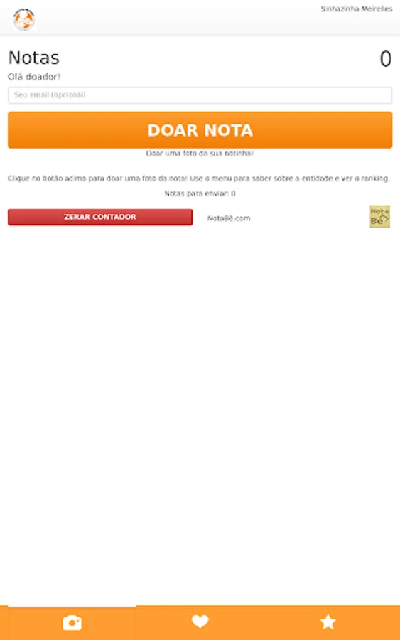 Donate a photo of the invoice to Sinhazinha Meirelles