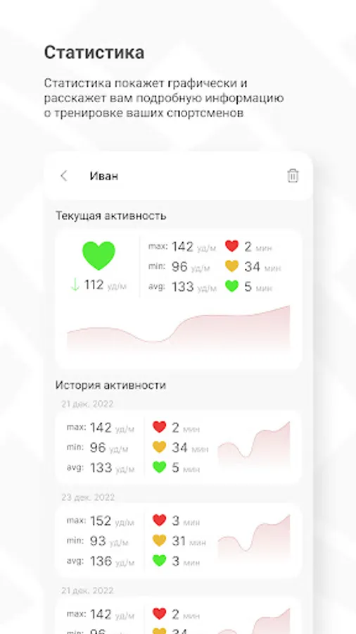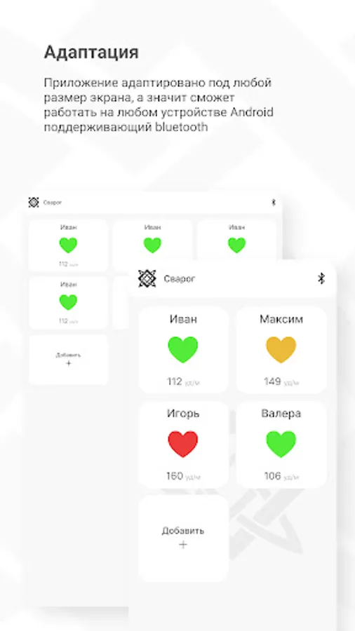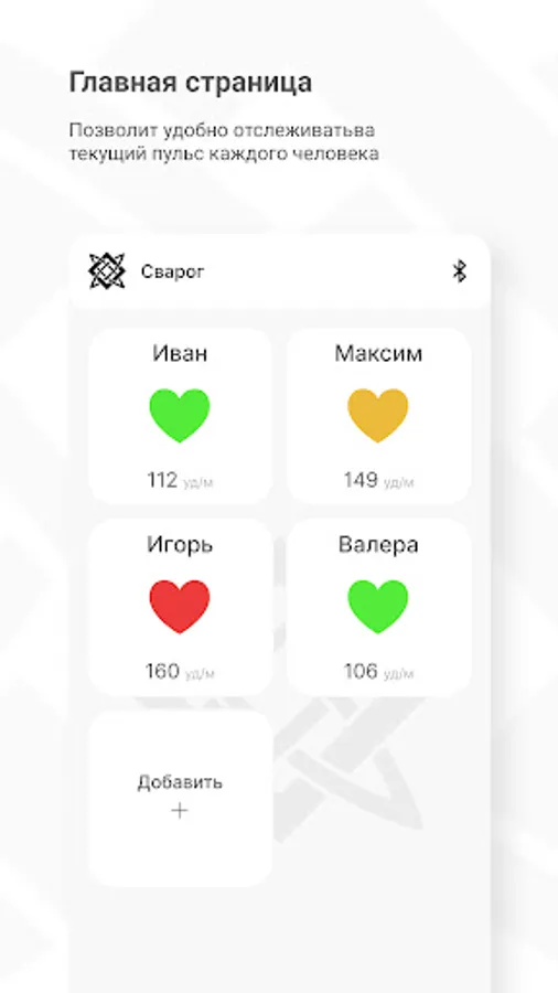 The application tracks the heart rate of two or more people! The interface makes it easy to track the heartbeat of several people at once, which will allow coaches or a group of athletes to keep their heartbeat records in one application!