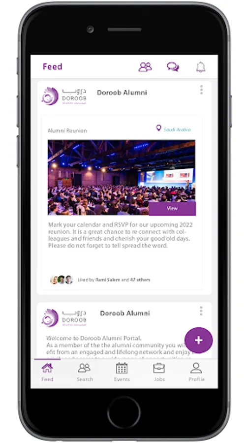 The official Doroob Alumni mobile app allows you to communicate and stay in touch with your classmates, friends, meet people and find new ways to connect with the Alumni Associations and more. By fully integrating with social networks and nurturing a culture of helping and giving back, you will be amazed how vibrant your community is.