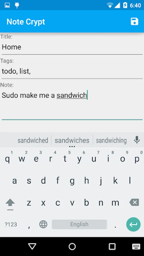 • Auto close the database, after 5 minutes, if you didn't and the current active application isn't Note Crypt (eg. If you exit with the home button). By doing so at the next opening of Note Crypt you need to re-enter the password for read your notes.