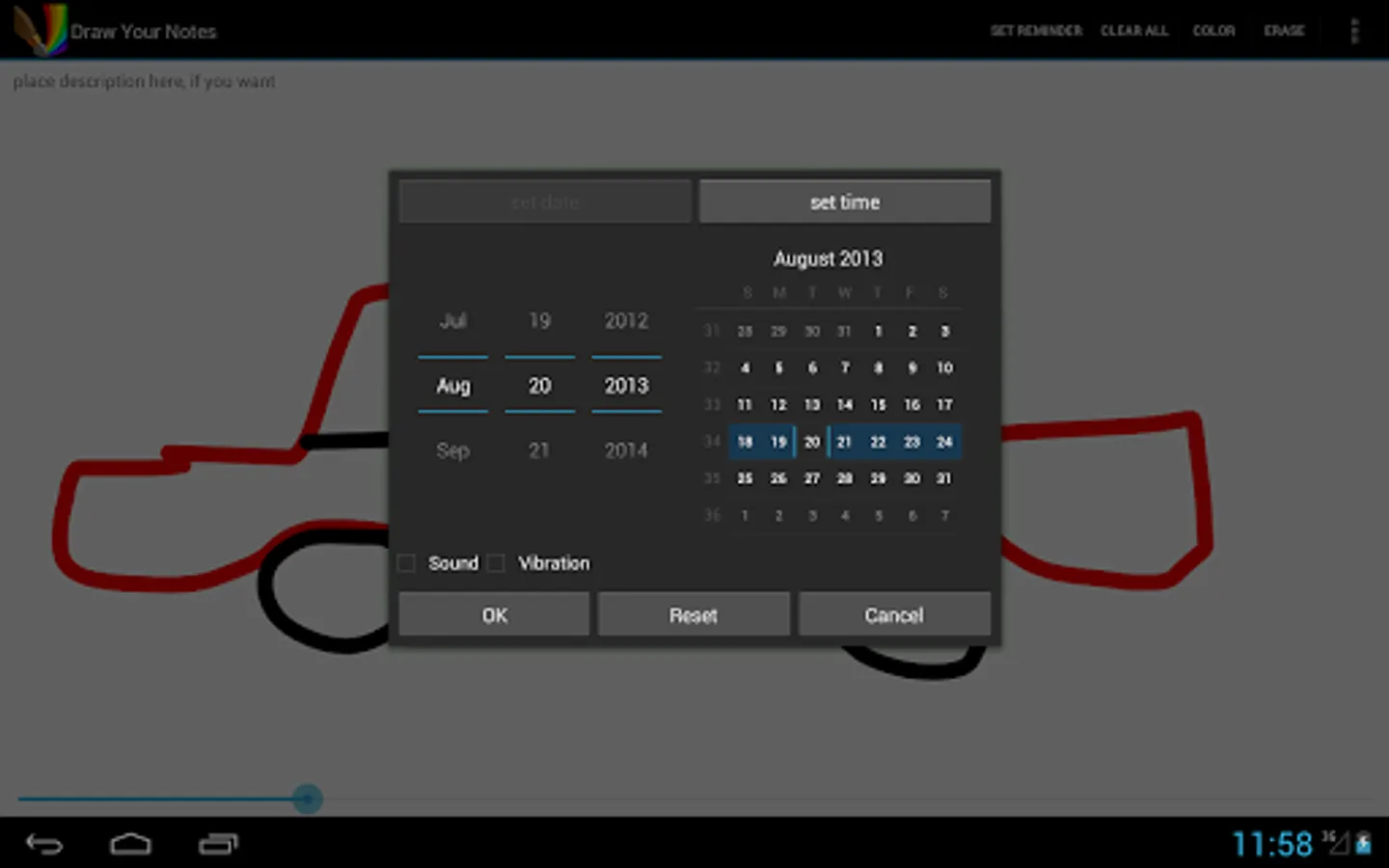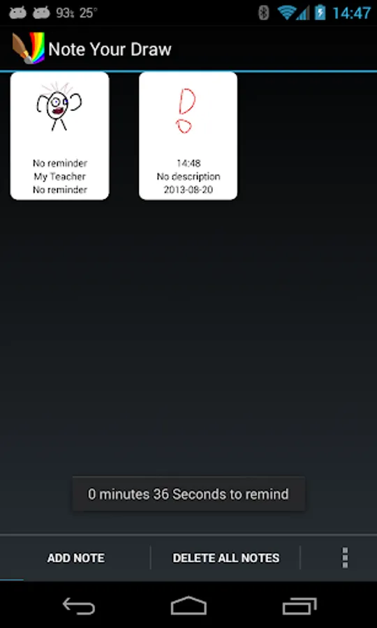 This application will help you create notes with reminders quickly and easily! This simple and easy application - just a few moves and a mini memo set! You can choose the date and time reminders. You can select the sound or vibration to your discretion. Are also available, some drawing functions to work with the program was more interesting! In a car or public transport, walking with friends or your favorite pet - make a note in a few seconds without difficulty! This application is for those who does not want to forget.