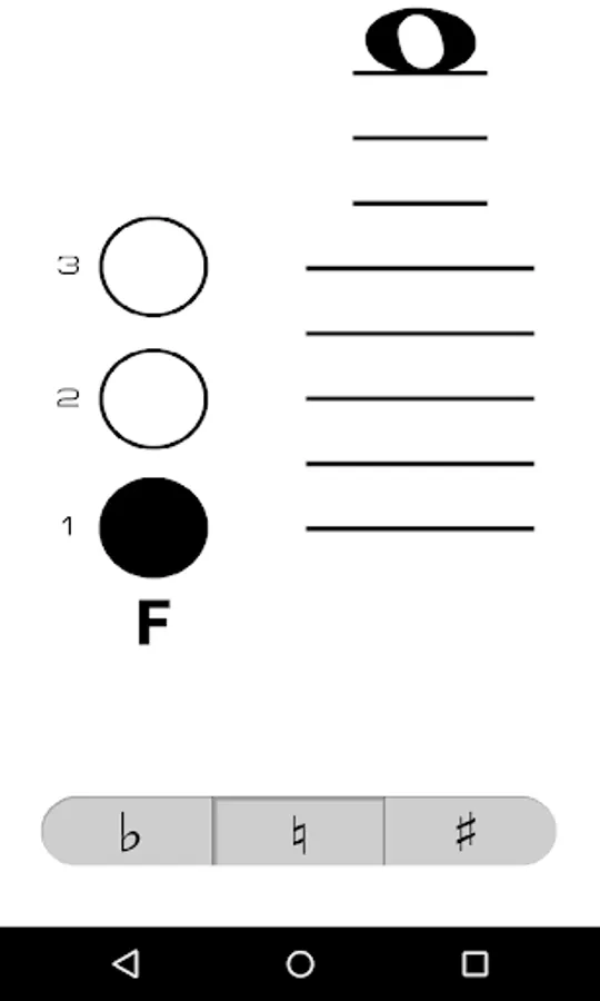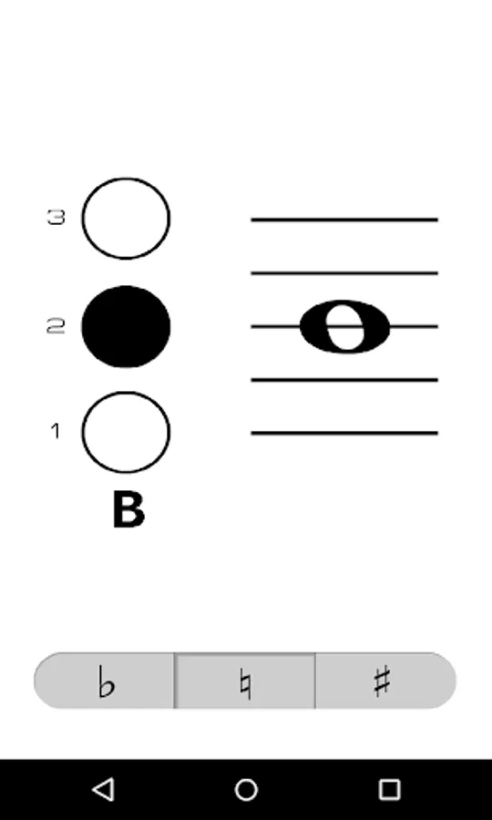 To use Trumpet Fingerings, simply tap the location on the staff of the note you wish to check or drag your finger up or down to the location of the note on the staff. Select whether the pitch of the note is flat, natural, or sharp by tapping the corresponding button on the bottom of the screen, notes are natural by default. The "1" next to the button on the left side of the screen represents the first valve on your trumpet (the one closest to your face when you play).