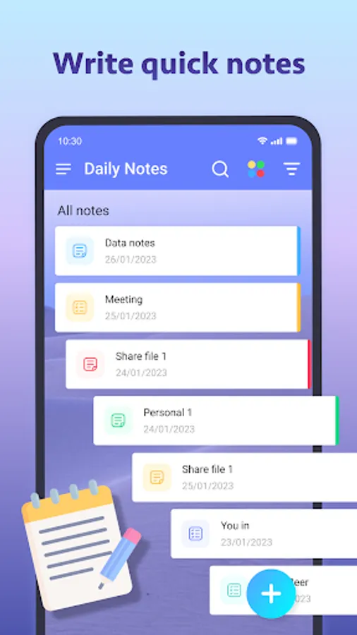 Notepad helps you create notes quickly and easily with your smartphone anywhere, anytime.