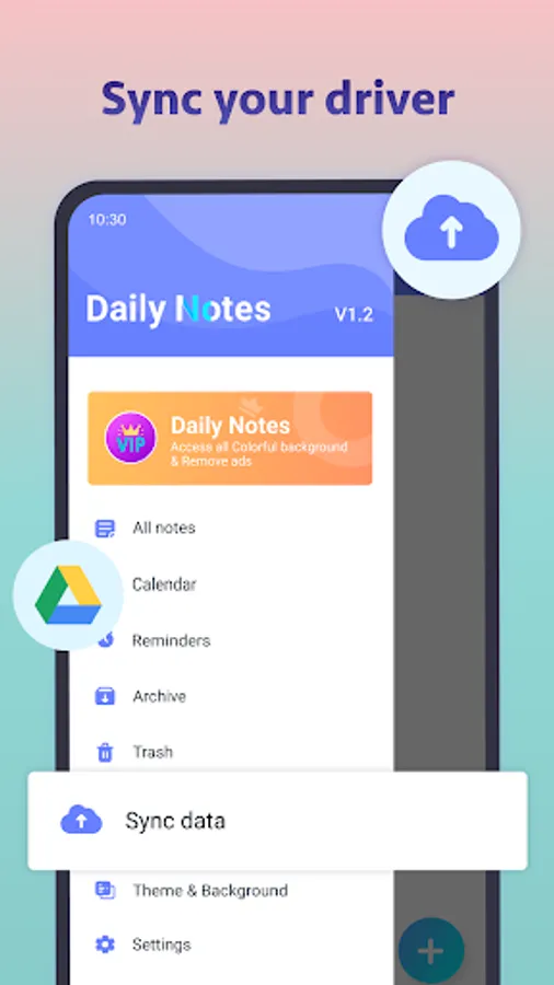 With the sync feature, your data and notes are backed up, restored and synced with your Google Drive account, helping to avoid data loss.